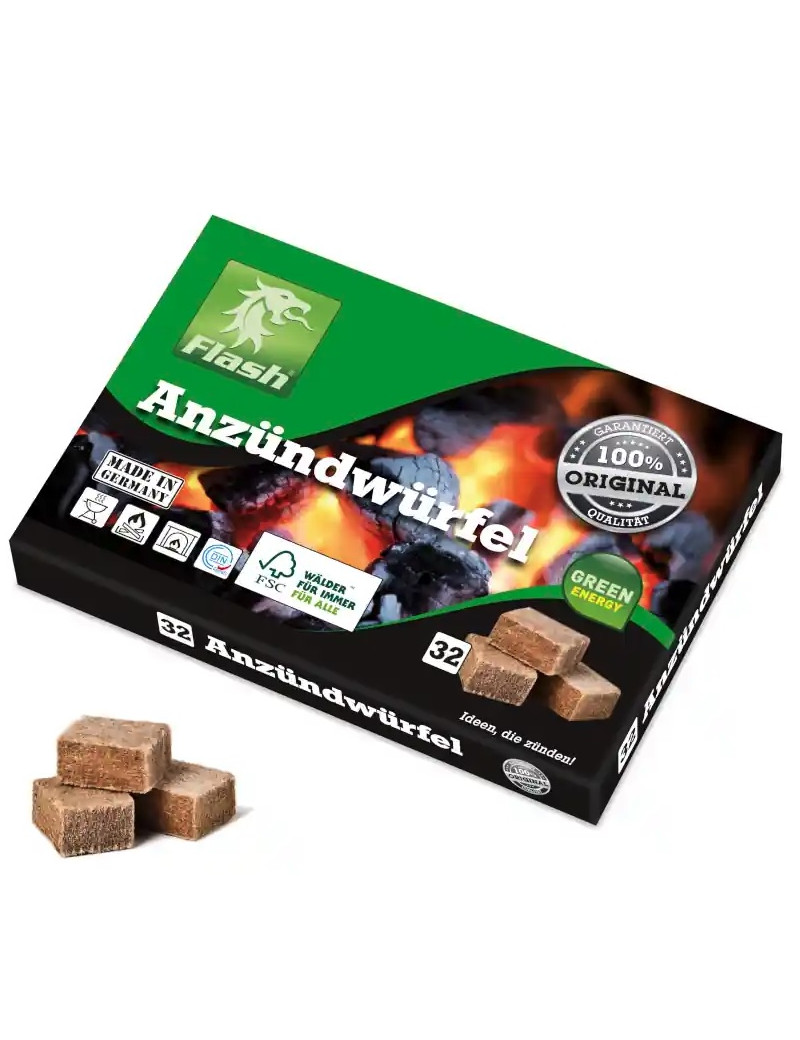 Aizdedzināšanas klucīši brūni no koka un vaska 32 gab.